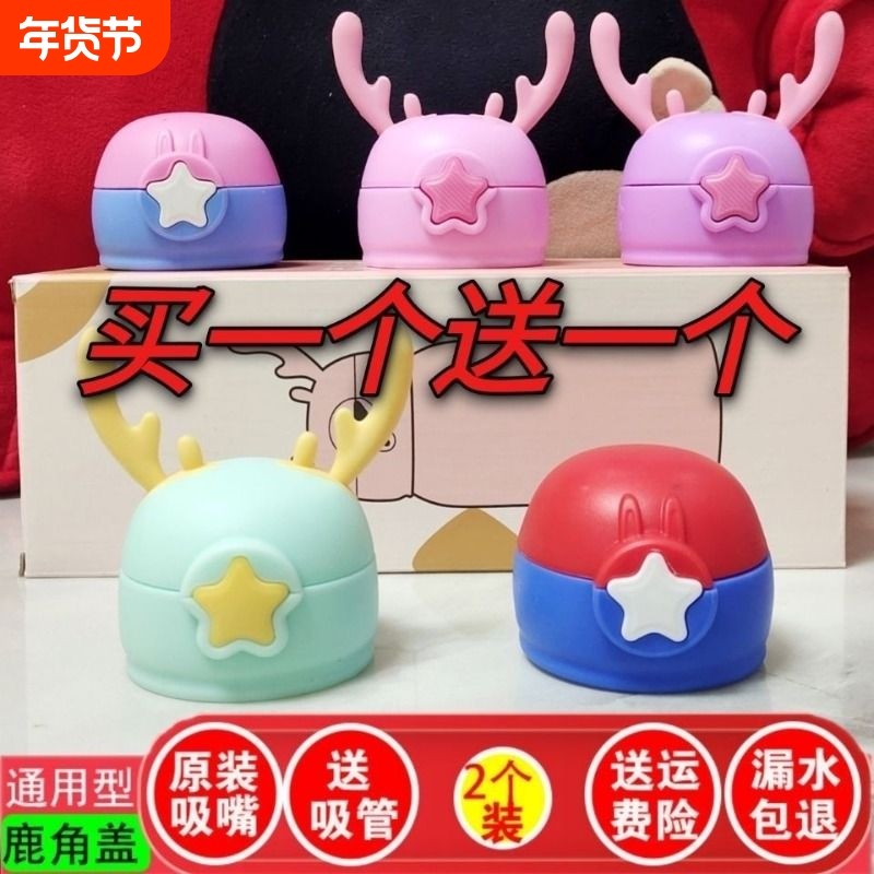 儿童保温杯盖子配件杯盖通用保温瓶水壶盖带硅胶吸管水杯鹿角星星