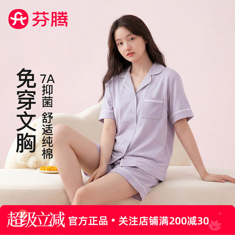 芬腾睡衣女士100%棉带胸垫家居服新款夏季短袖大码可外穿舒适透气