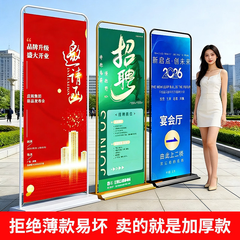 易拉宝展示架招聘广告牌定制海报设计制作展示牌展架立式落地式架