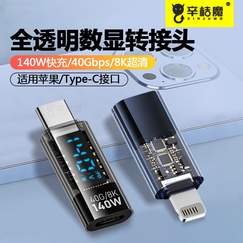透明数显转接头TypeC公对母笔记本电脑40G高速雷电3数据线140W快充适用苹果MacBook转换器lightning母转15公