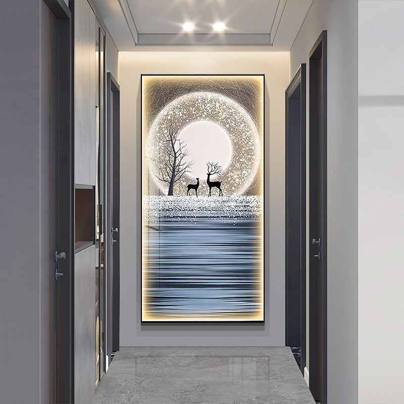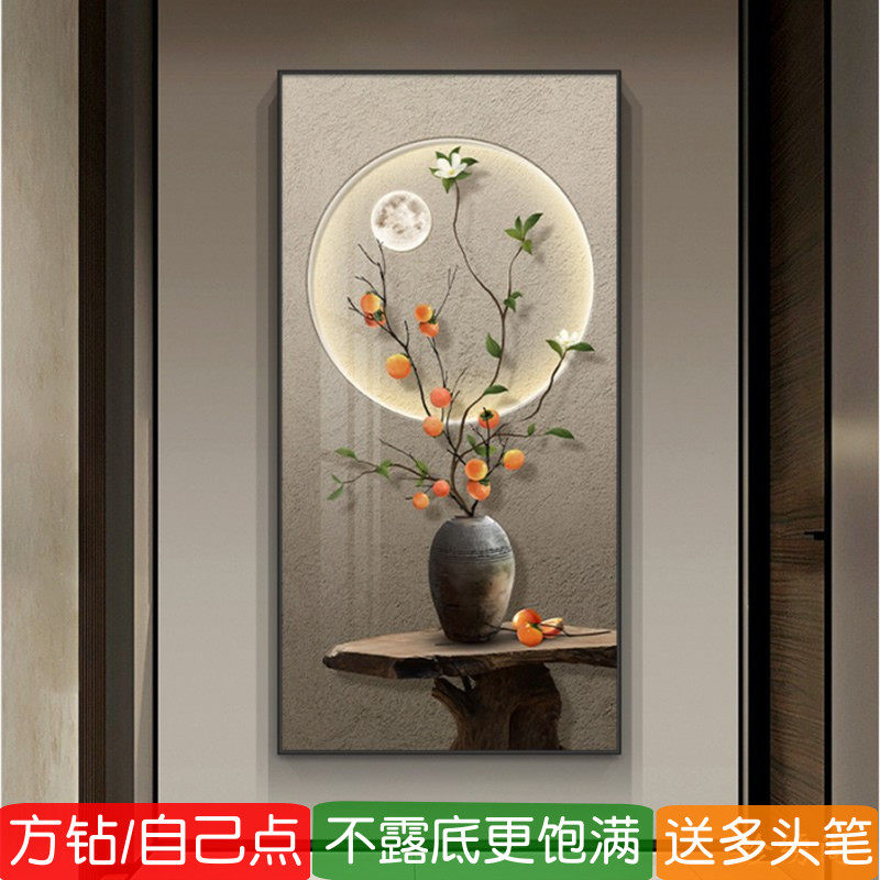 轻奢玄关装饰画简约现代高端大气入户艺术钻石画竖版走廊壁画灯画