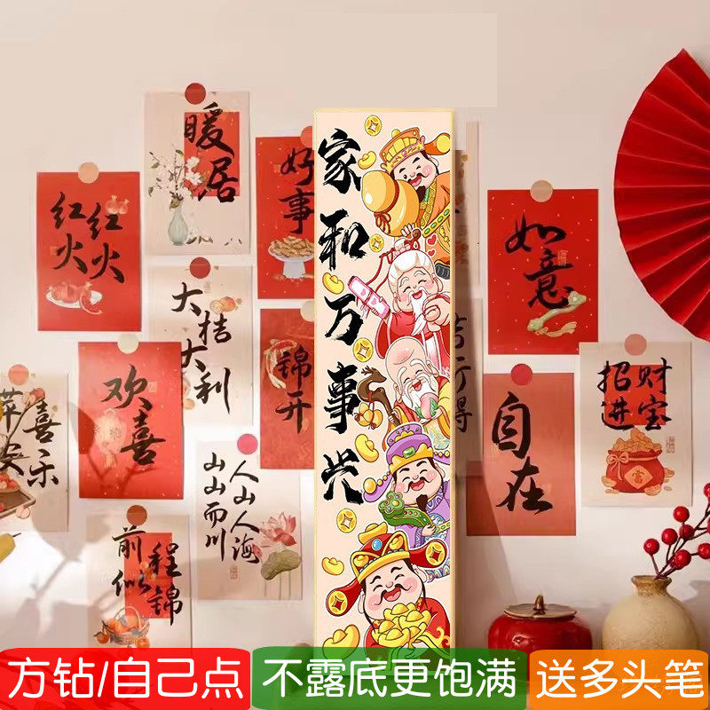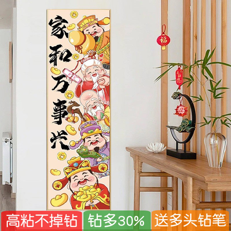 5d竖版福禄寿喜财钻石画新款家和万事兴粘贴砖点钻十字绣五路财神