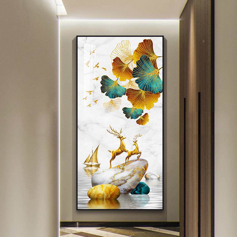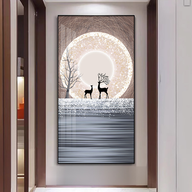 5d钻石画满钻新款麋鹿轻奢贴砖石十字绣2026客厅玄关过道走廊竖版