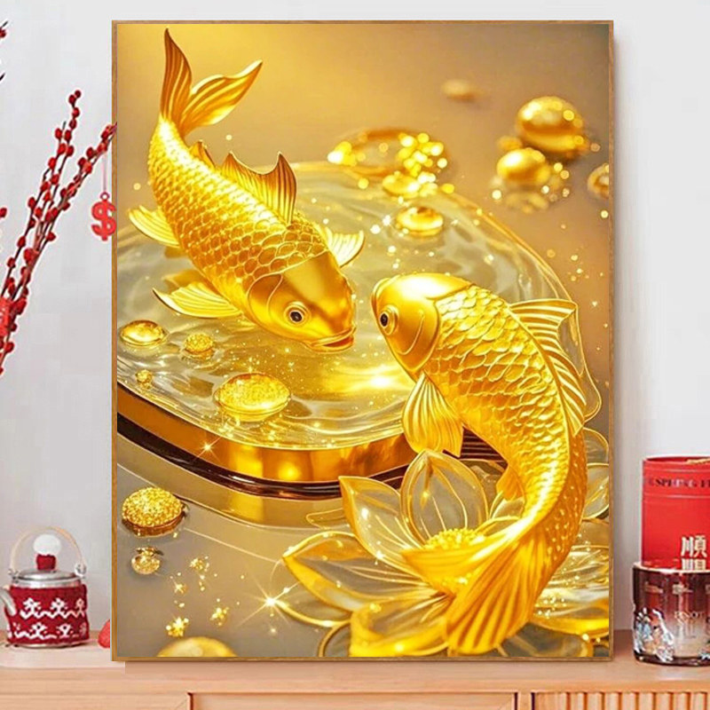 带框钻石画满钻圆钻方钻儿童手工贴钻绣客厅竖版发财锦鲤双鱼新款