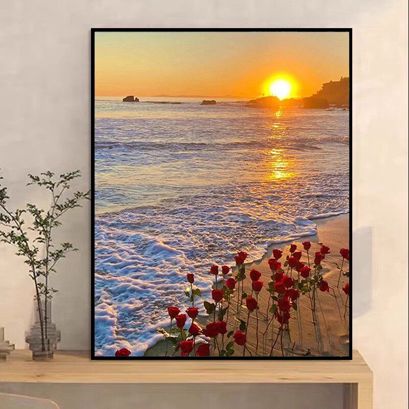 带框满钻钻石画巴黎花市竖版2024新款手工diy点贴粘钻十字绣钻石