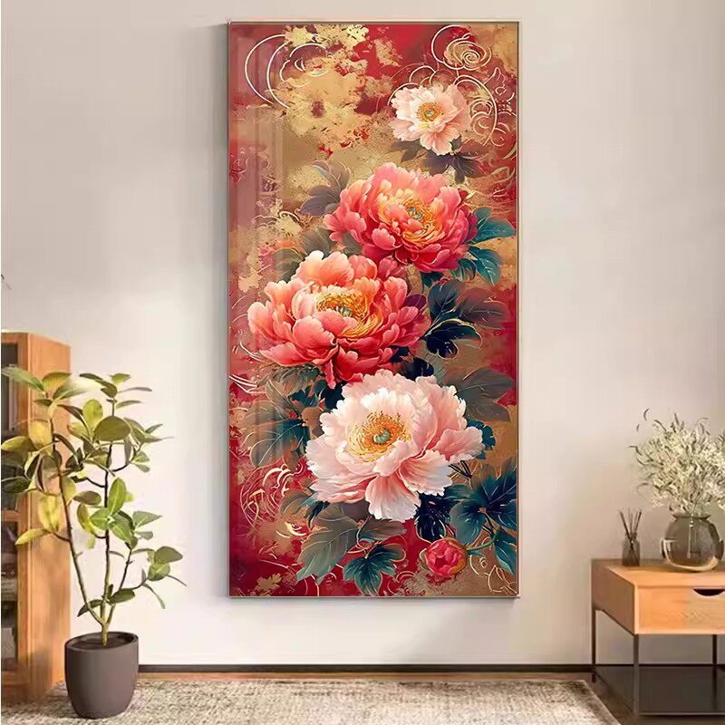 5d竖版玄关钻石画方钻满钻鲜艳花开富贵牡丹花粘贴钻十字绣砖石秀