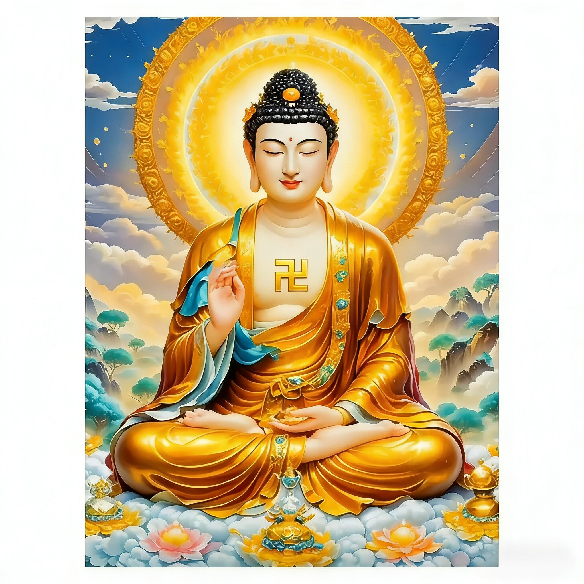 带框钻石画满钻方钻手工贴钻绣客厅玄关竖版新款释迦牟尼佛像金身