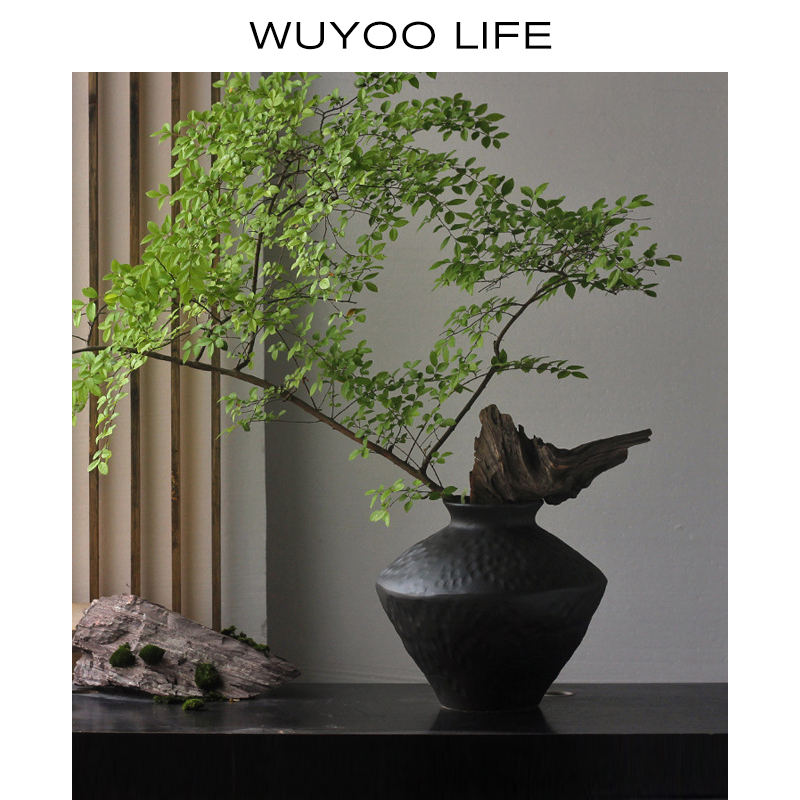 禅意花瓶高级感黑色摆件桌面办公室干花花束客厅摆设一枝花96503