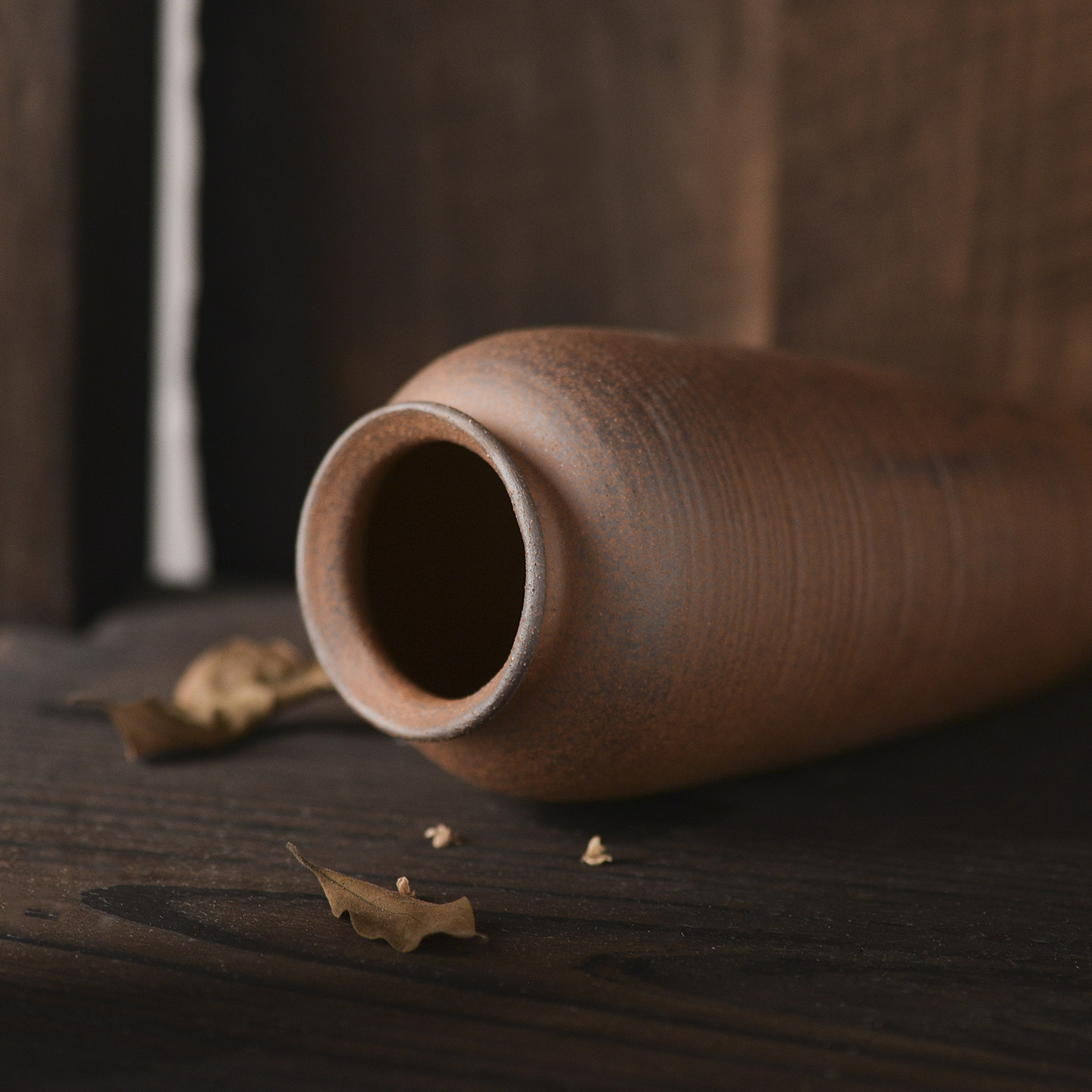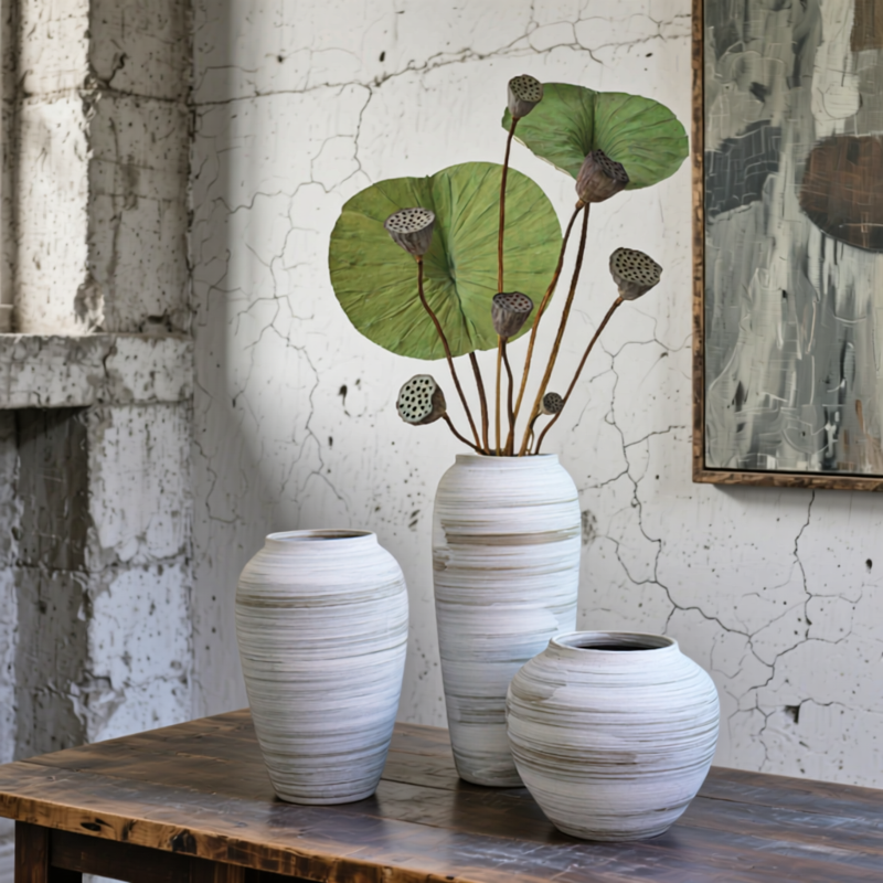 镧林复古粗陶罐侘寂风禅意花瓶手工花器客厅装饰中式花盆麒零横条