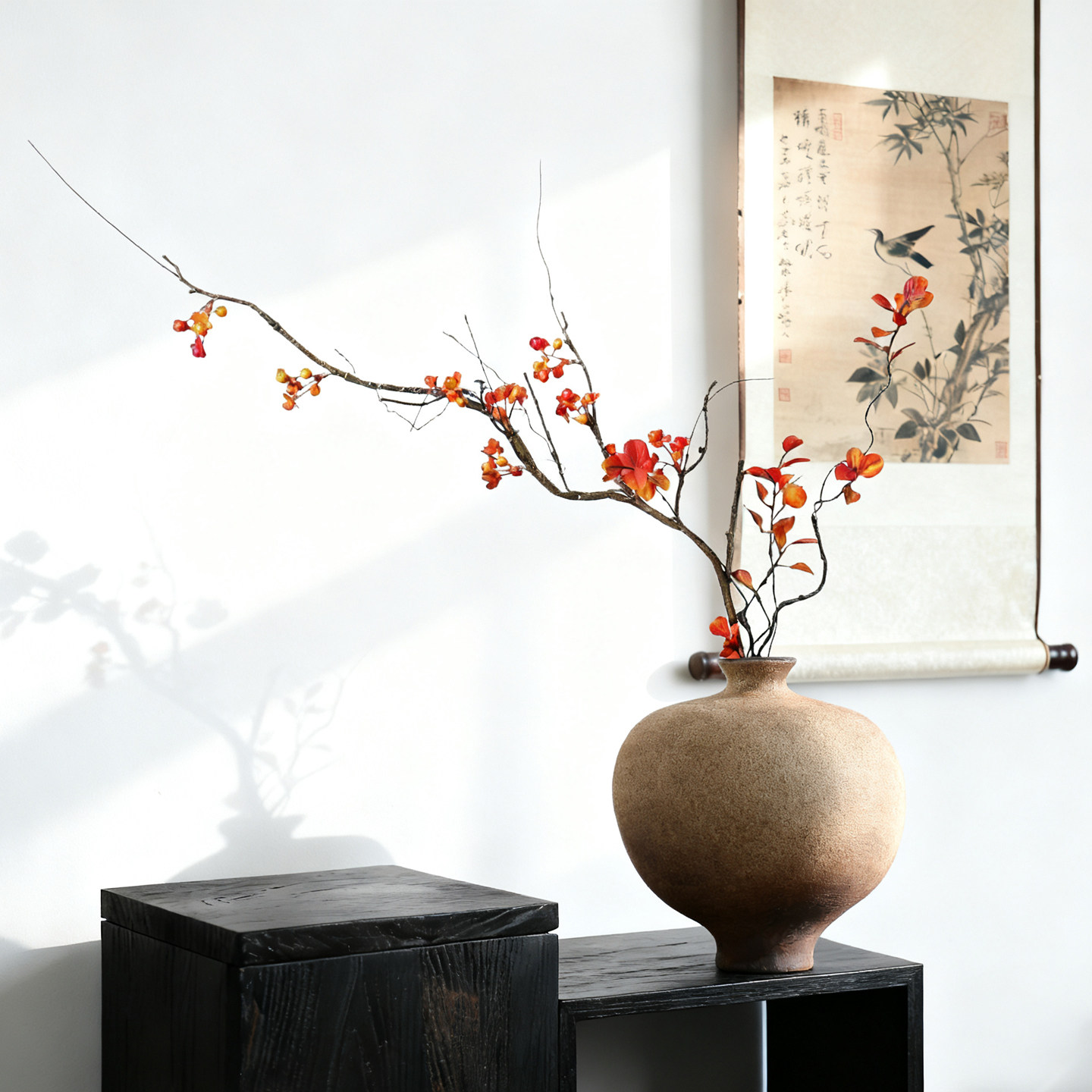 侘寂风复古新中式禅意花瓶瓷器枯枝创意陶瓷摆件民宿酒店日式花艺
