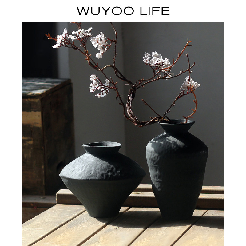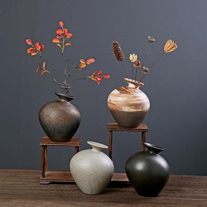 复古粗陶罐子日式禅意花瓶手工土陶花器家居客厅装饰中式插花摆件