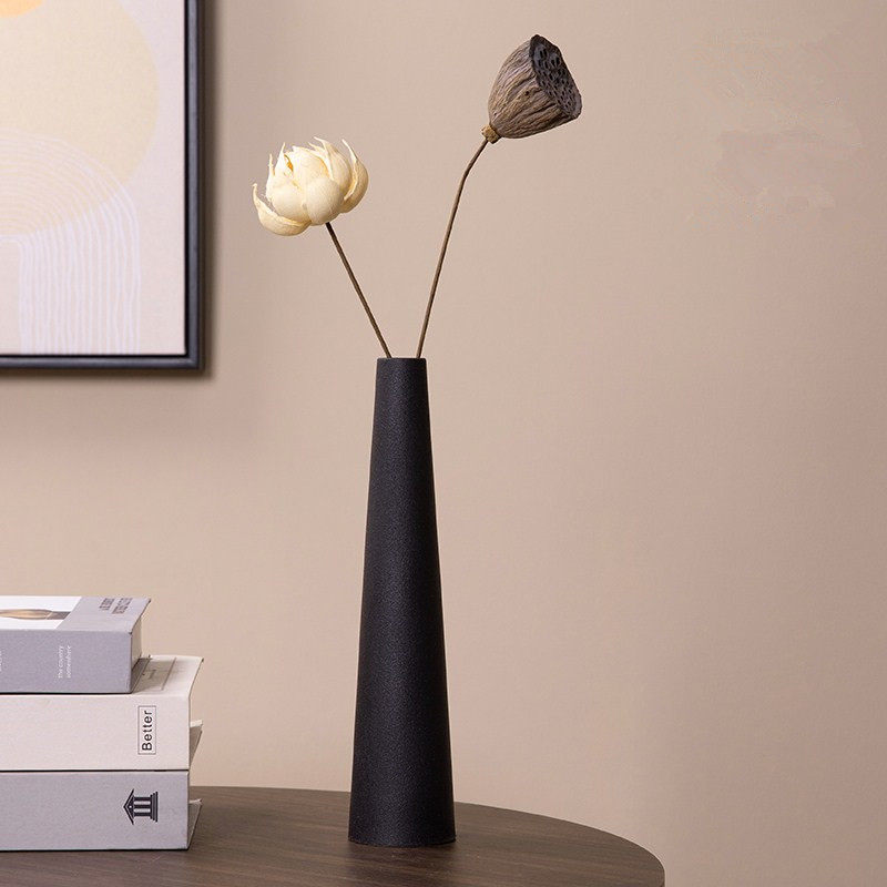 高级感中式复古黑色客厅桌面干花装饰摆件陶瓷小花瓶茶几禅意插花