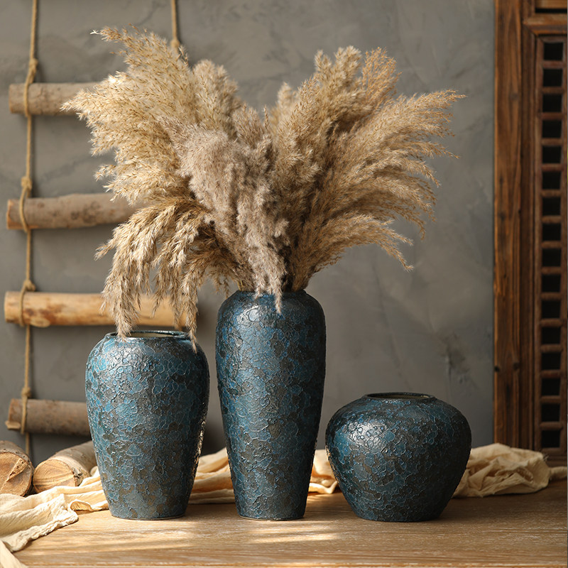 景德镇侘寂风禅意花瓶做旧古董风干花插花陶器酒店民宿装饰品摆件