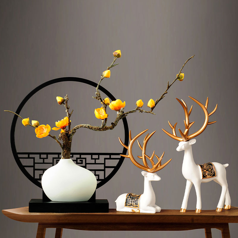 新中式鹿摆件禅意花瓶创意家居装饰品现代茶室房间布置电视柜酒柜