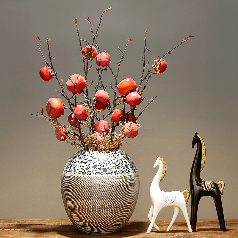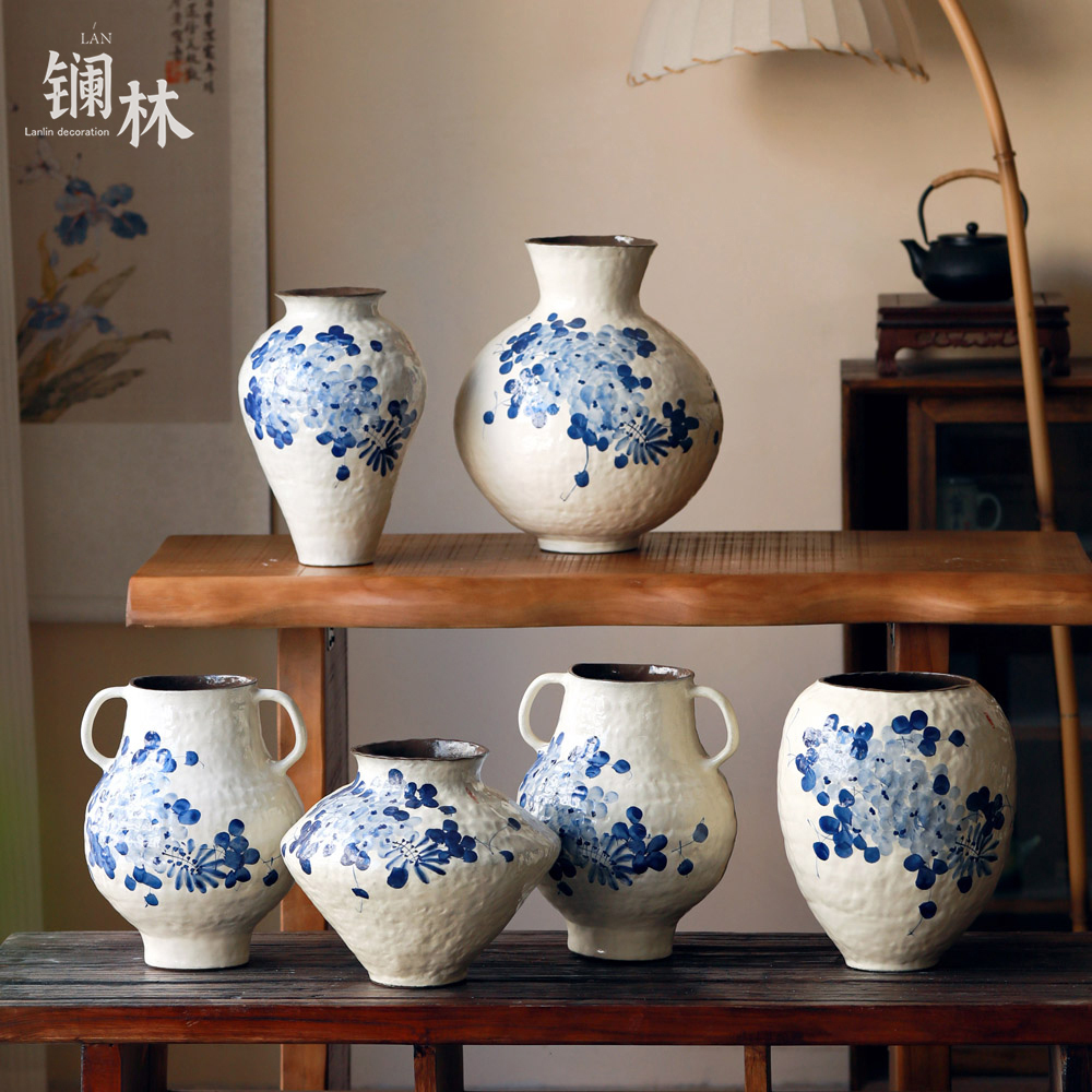 景德镇复古粗陶禅意花瓶民宿餐厅客厅家用台面装饰品水培花器摆件