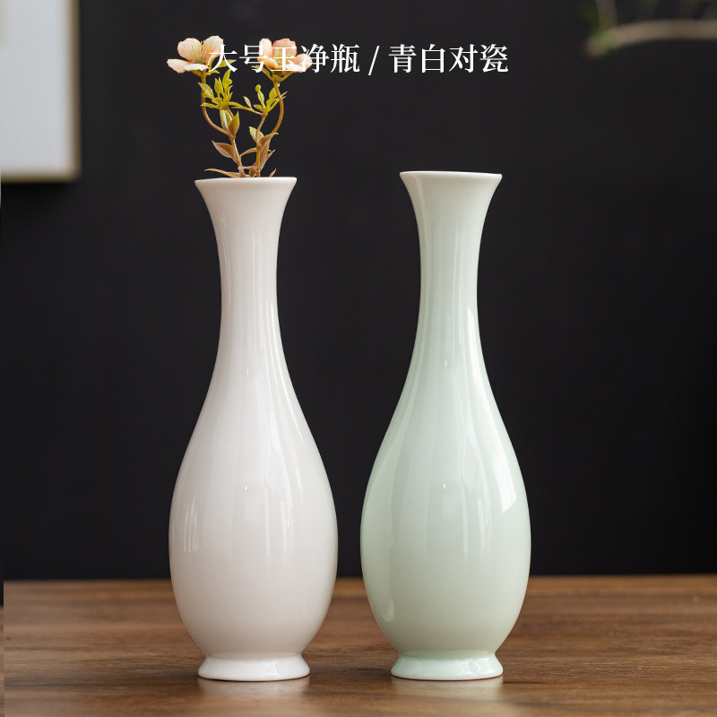 白瓷玉净瓶观音瓶青瓷小号插花长颈陶瓷摆件供佛禅意花瓶佛前供具