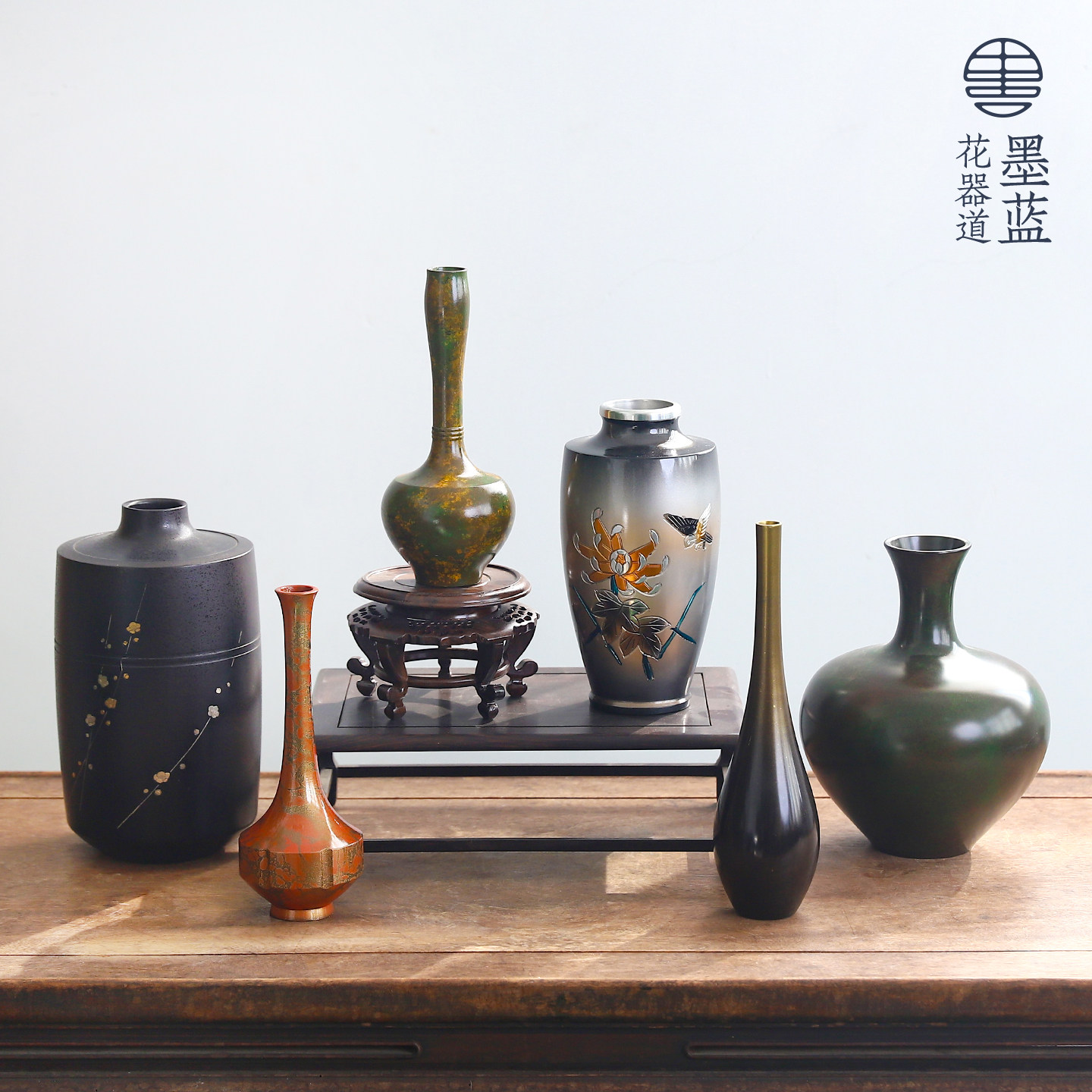 朴树现货 日本回流铜器紫斑铜 禅意花瓶摆件复古装饰日式插花花道