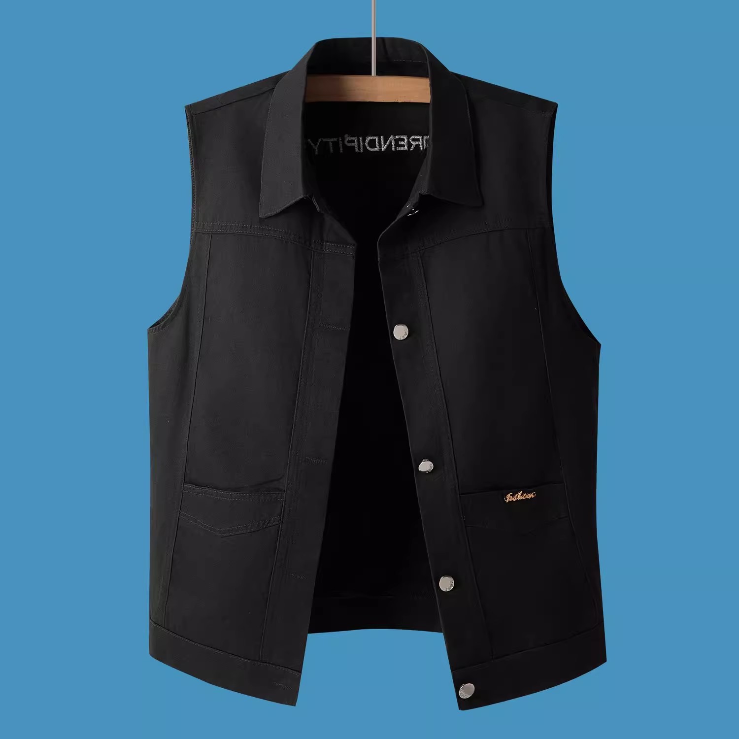 2025新款男女秋冬韩版宽松马夹背心上衣刺绣黑色牛仔马甲短外套