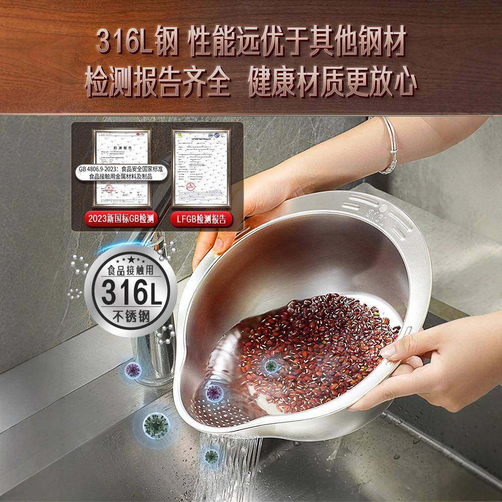 德国316不锈钢食品级洗菜盆沥水篮洗米筛淘米盆滤水篮漏筛漏筐盆