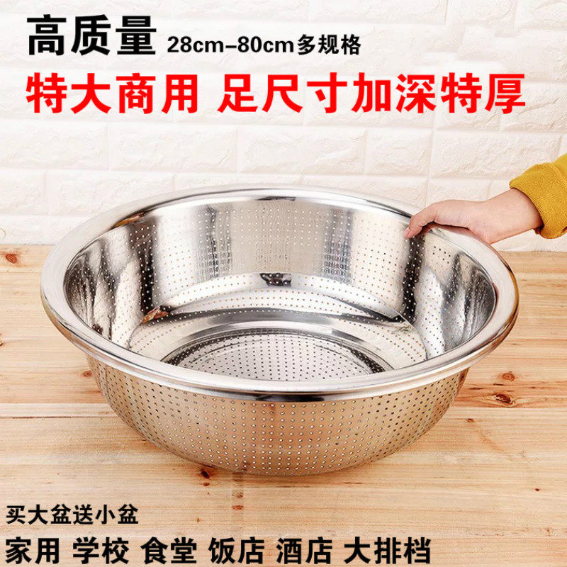 新品特厚不锈钢漏盆沥水盆过滤盆洗菜淘米盆家用商用超大加深米筛