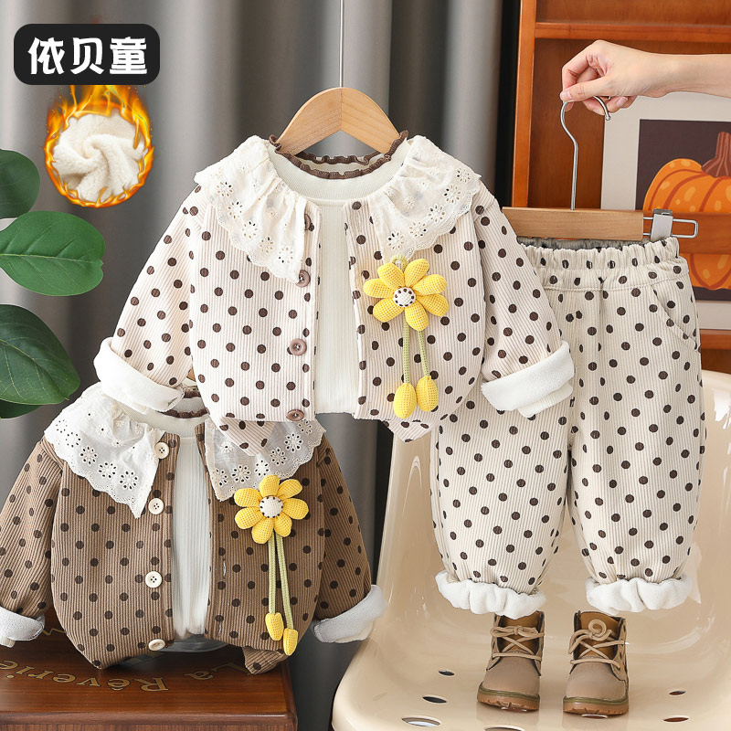 女童加绒套装秋冬洋气2儿童冬装女孩婴儿衣服冬季1岁女宝宝套装