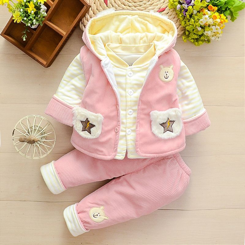 女宝宝冬装夹棉套装01一2岁3新生婴幼儿童装衣服秋季棉衣三件套装