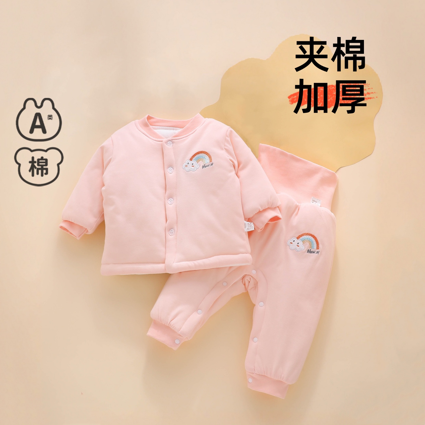 婴儿衣服保暖套装秋冬1一2岁女宝宝夹棉分体冬装幼儿高腰加厚棉袄