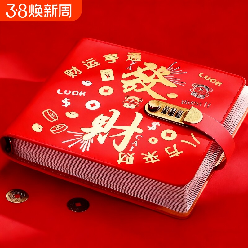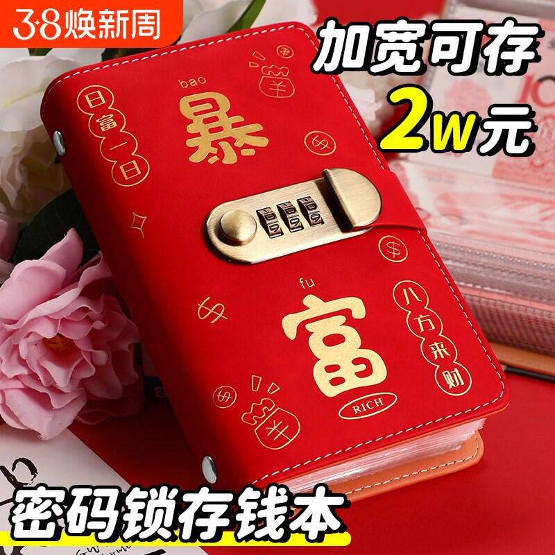 过年新款發財存钱本存钱夹密码锁钱包记账本发财攒钱本大容量纸币现金收纳册红包款百元钞票册收纳包理财神器