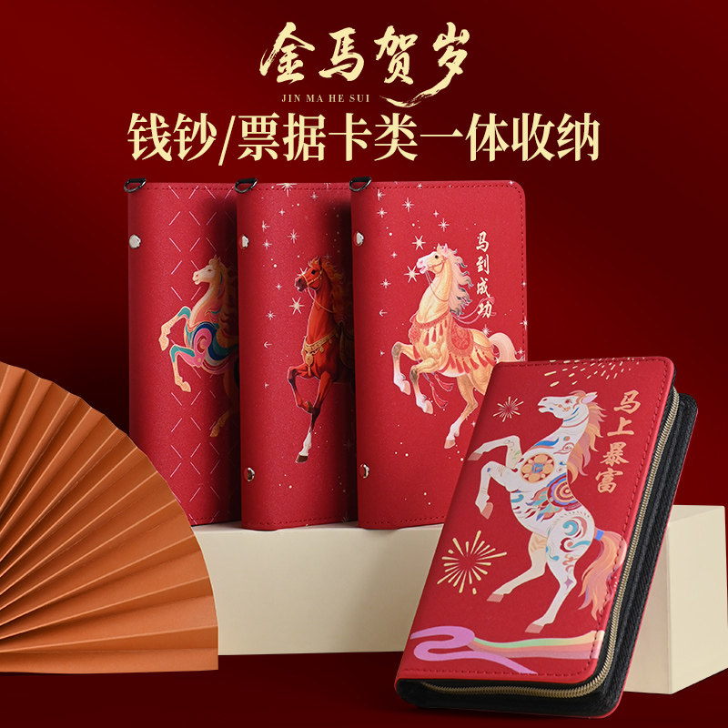 马年封面拉链现金存钱本人民币钞票纪念纸币银行卡红包一体收纳册