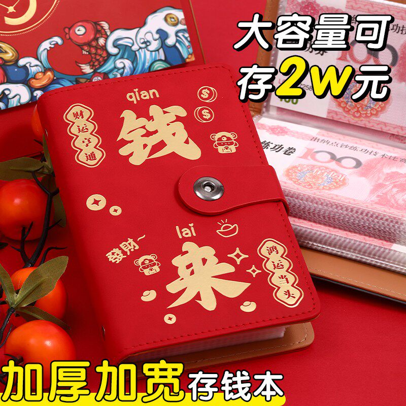 2026年新款发财存钱本大容量现金存钱夹可放2w现金红包钞票收纳册儿童理财神器人民币纸币钱币一万元收藏册子