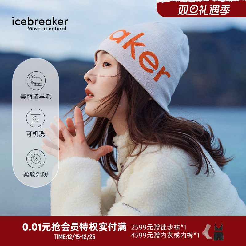 icebreaker可机洗美利奴羊毛男女logo针织线帽柔软舒适户外滑雪
