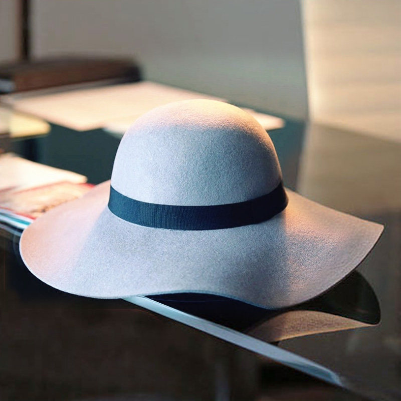 英伦风简约百搭羊毛帽女秋冬欧美出游毛呢大边帽日式风宽檐潮人帽