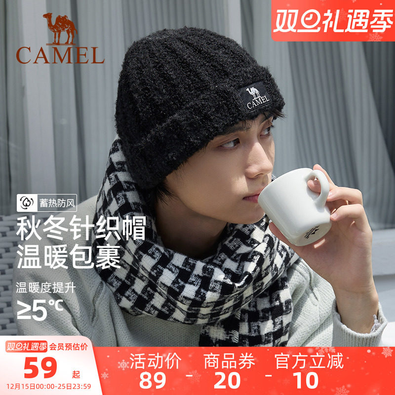 骆驼保暖针织帽女羊毛纱冬季户外防风滑雪护耳包头帽冷帽毛线帽子