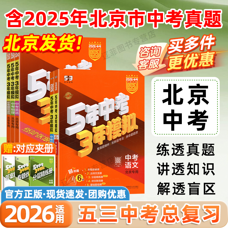北京专用版2026五年中考三年模拟数学物理化学语文英语政治历史生物地理中考总复习资料初三九年级中考必刷题5年中考3年模拟真题卷