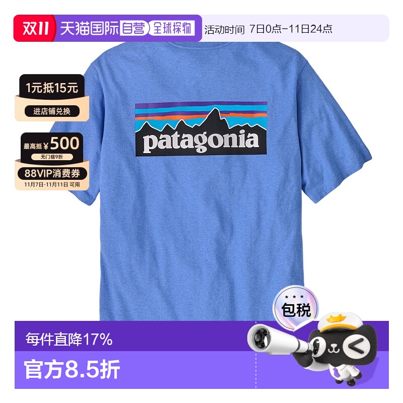 香港直邮Patagonia巴塔哥尼亚男款短袖印花宽松圆领时尚蓝色美式