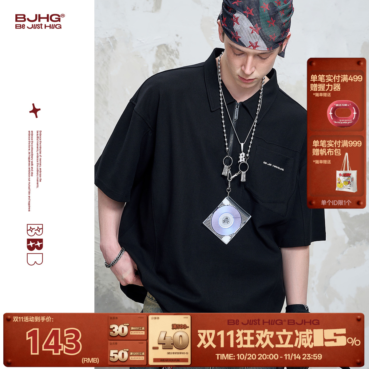 BJHG不计后果 重磅珠地POLO衫男款短袖t恤夏季复古宽松简约半袖女