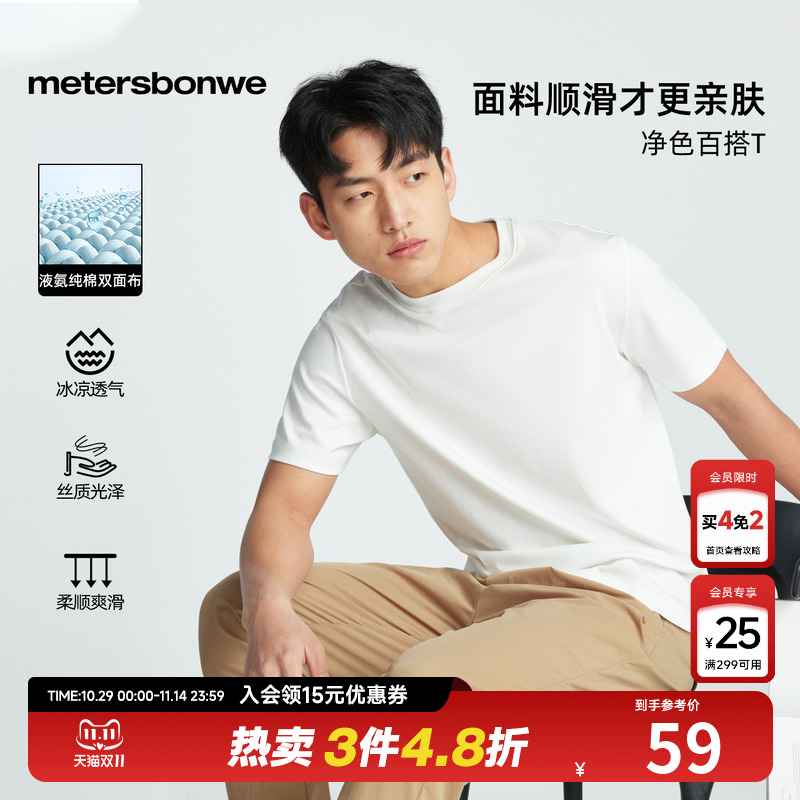 真维斯三本针纯棉男款短袖t恤纯色新款夏季重磅内搭男士白色打底