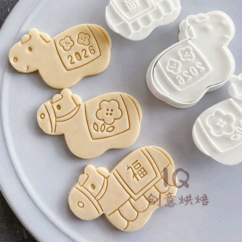 马年卡通饼干模具2026新年春节祝福曲奇糖霜立体按压家用烘焙工具