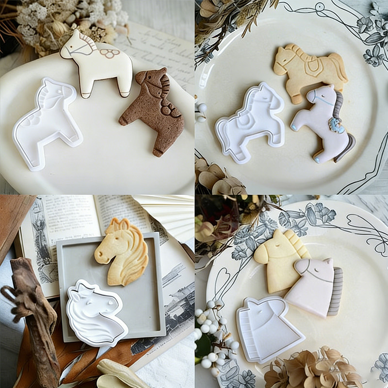 新年2026卡通小马饼干模具立体拼装摇摇马按压曲奇翻糖烘焙工具