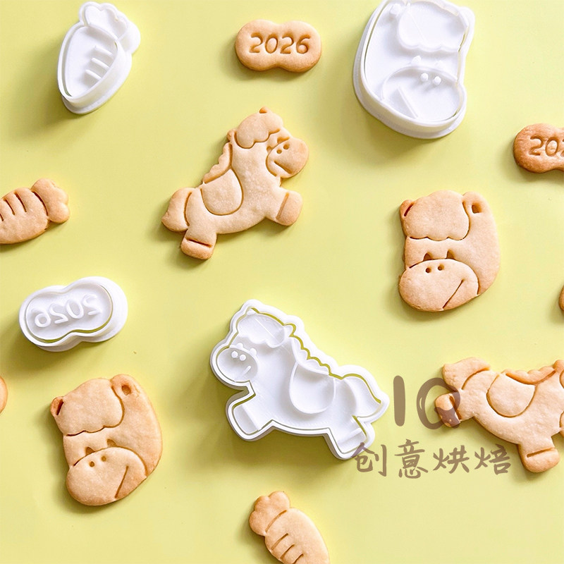 2026马年新年饼干模具卡通小马祝福曲奇按压切模家用翻糖烘焙工具