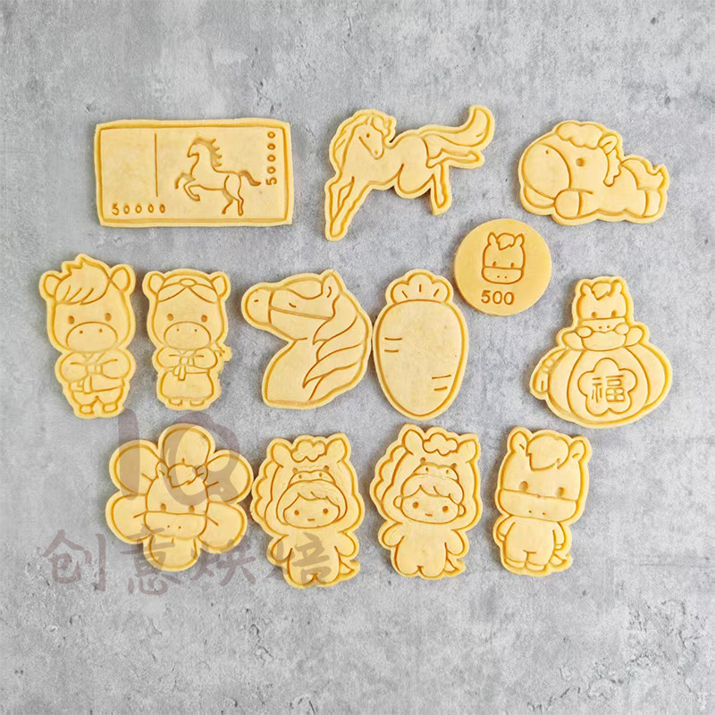 2026马年饼干模具马上有钱卡通小马新年饼干曲奇切模家用烘焙工具