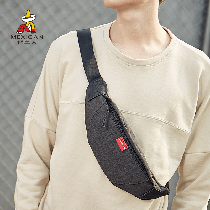 稻草人手机腰包男士潮牌单肩包小型运动多功能背包斜挎包帆布胸包