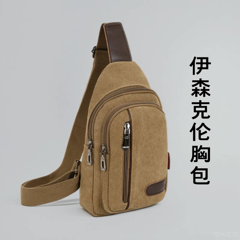 新款精品男士包包帆布胸包斜挎包休闲复古背包时尚百搭潮牌单肩包