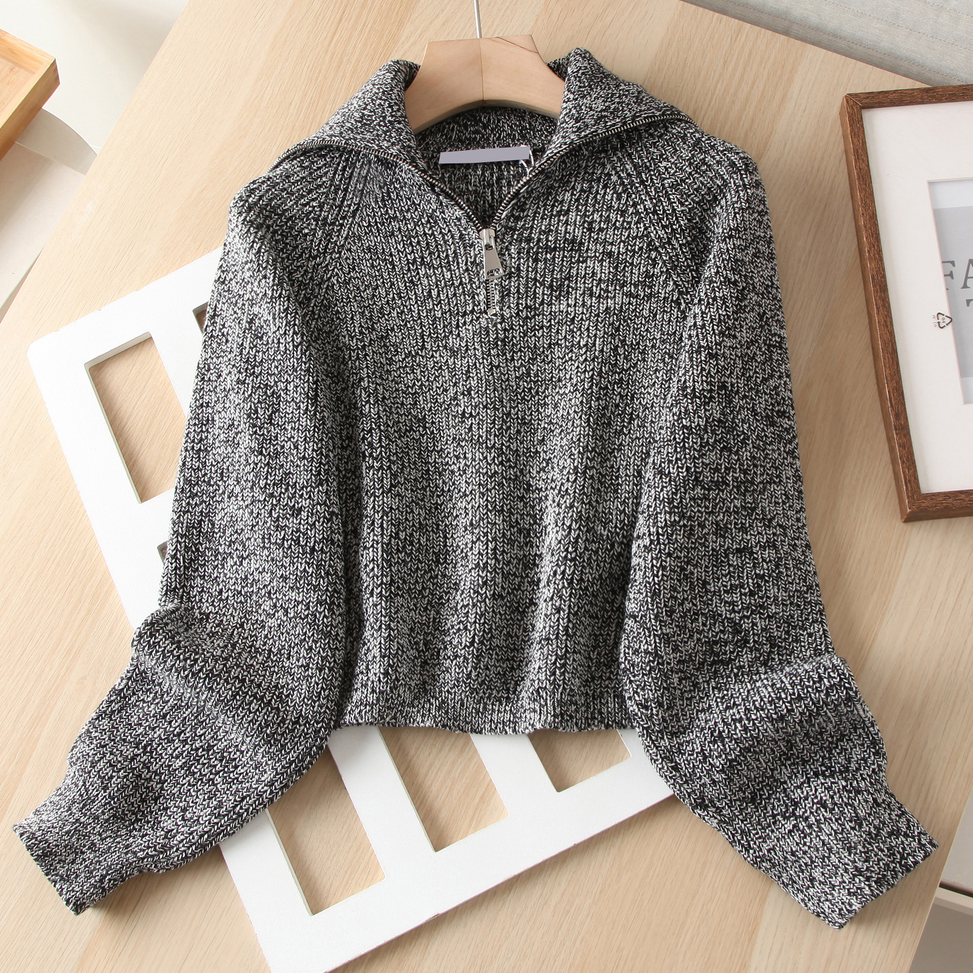 半高领毛衣女秋冬季套头宽松针织衫韩版春长袖前短后长加厚打底衫