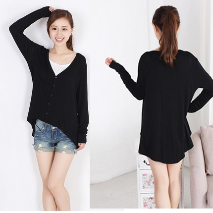 韩版女装春夏季莫代尔大码针织衫外套前短后长长款长袖不规则开衫
