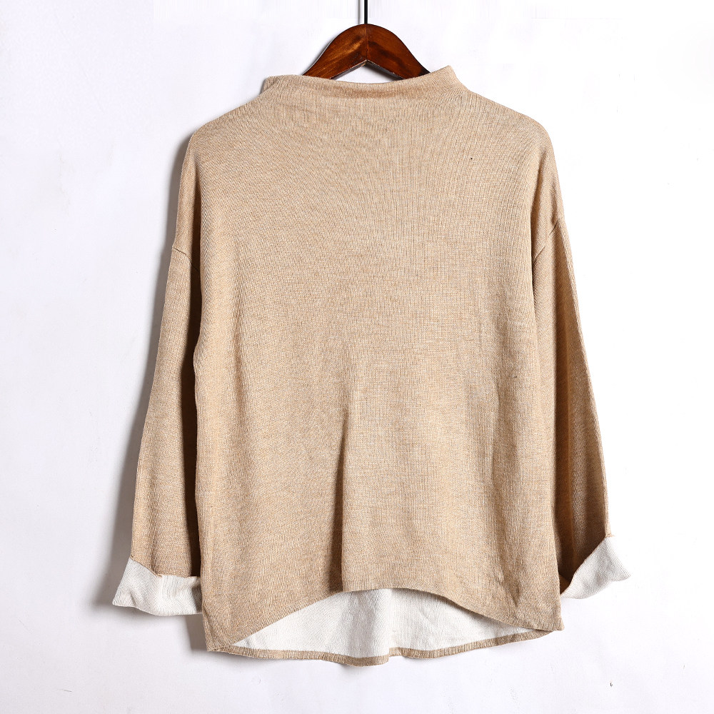 欧货2025秋冬新款高领套头纯色宽松开叉前短后长针织衫打底毛衣女