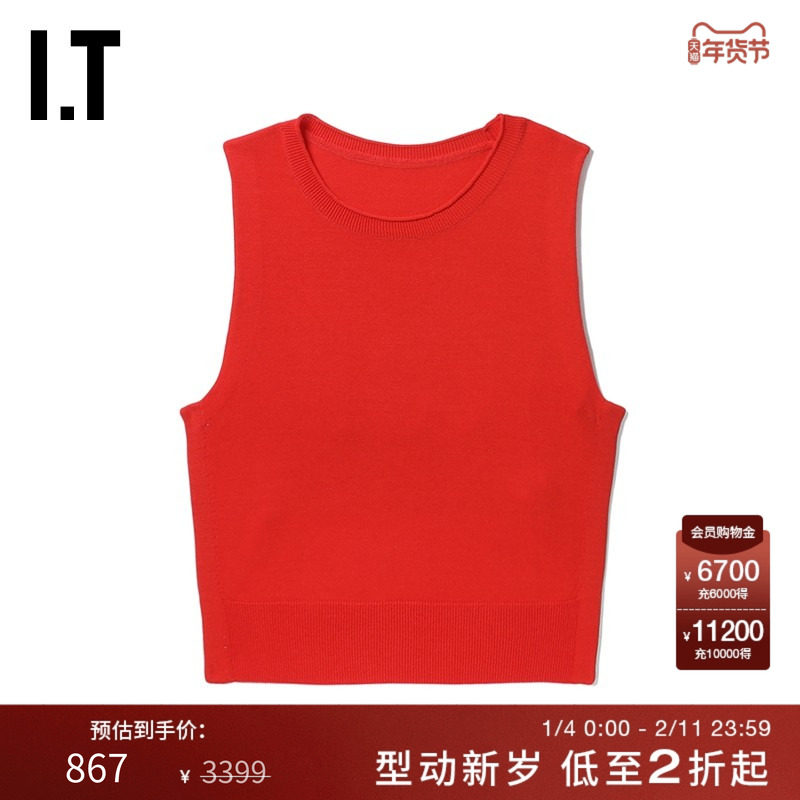 IT D DEMOO女装无袖针织衫简洁气质前长后短纯色上衣203883XI