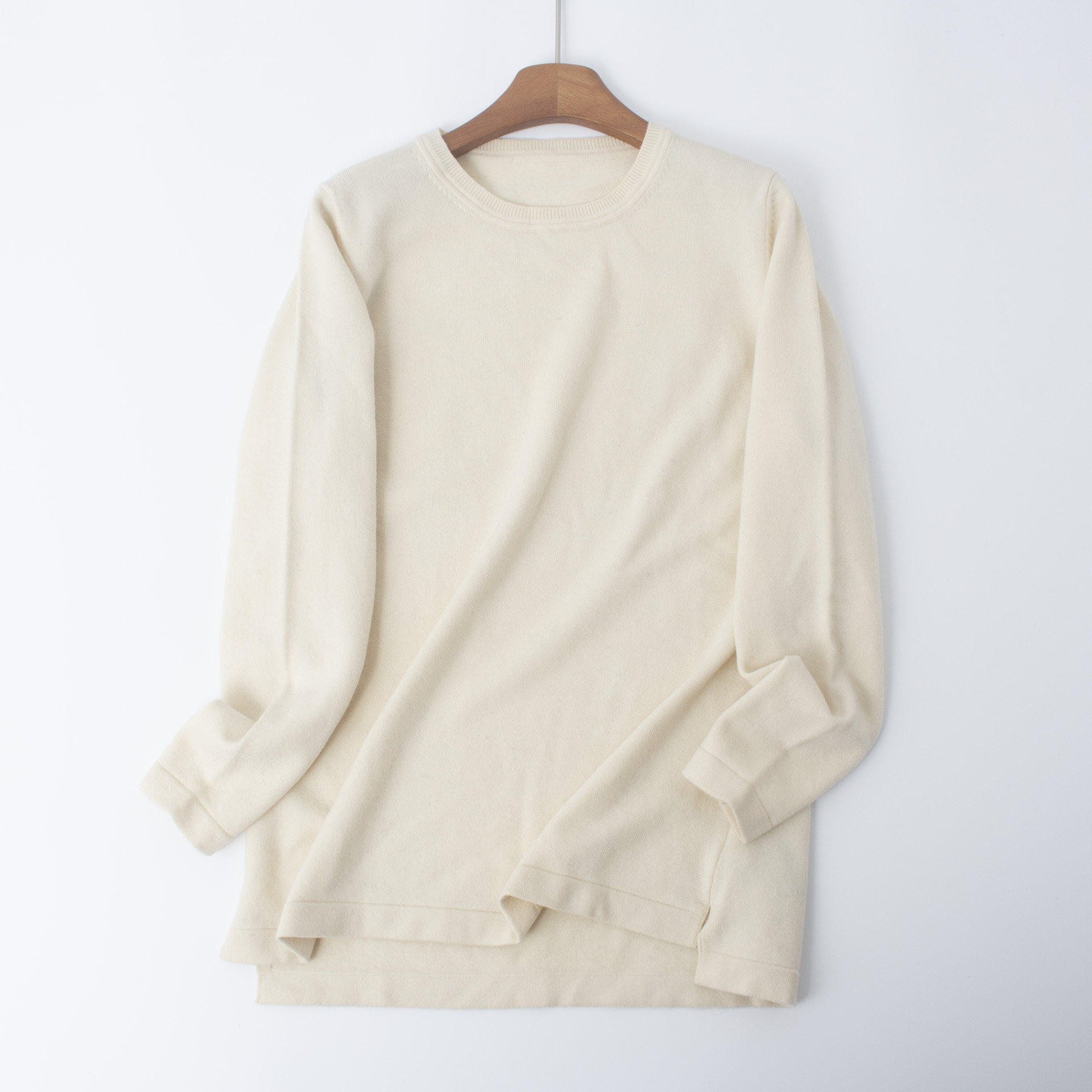 羊毛羊绒棉混纺秋冬尾货圆领前短后长不规则针织保暖毛衣打底衫女