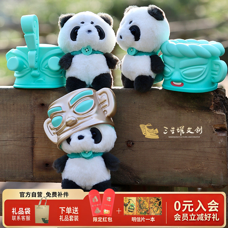 三星堆博物馆文创神目熊猫布艺毛绒玩具绒布周边礼物公仔玩偶送人