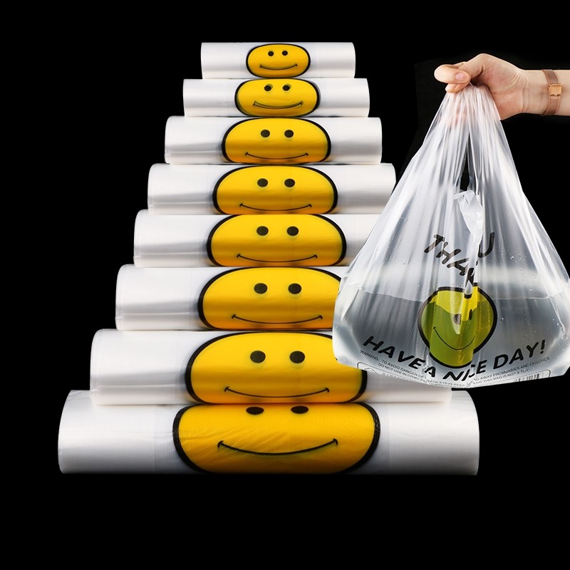 加厚透明笑脸袋超市购物手提袋食品塑料方便袋外卖打包背心袋批发